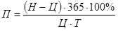 Цены на рынке бывают разные. Так как ГКО является дисконтной бумагой, она продается по цене ниже номинала. Доход инвестора составляет разница между деньгами, которые он заплатил при покупке и номиналом. Цена – это % от номинала. Общая годовая доходность рассчитывается по следующей формуле: